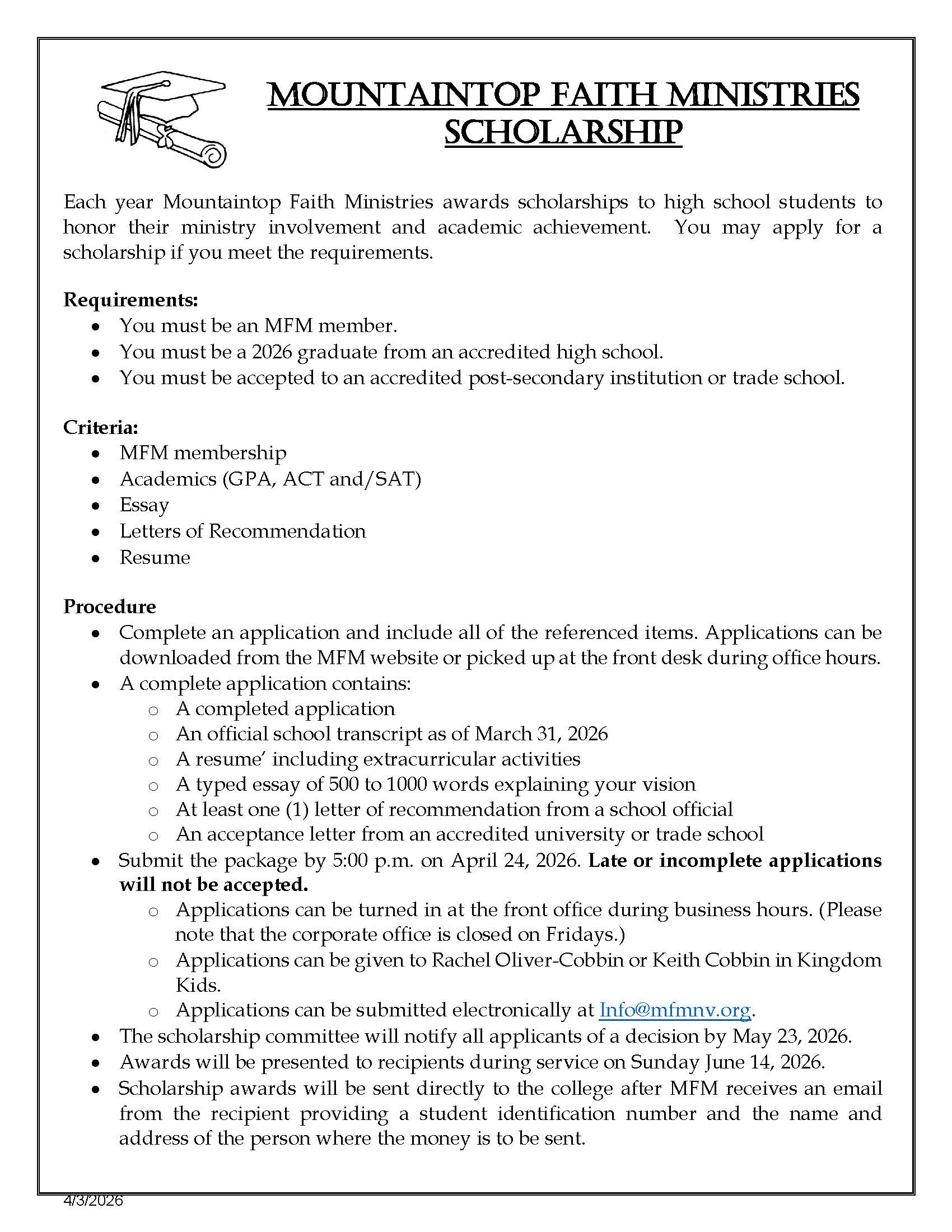 Concluded for 2025 Check schedule for special services